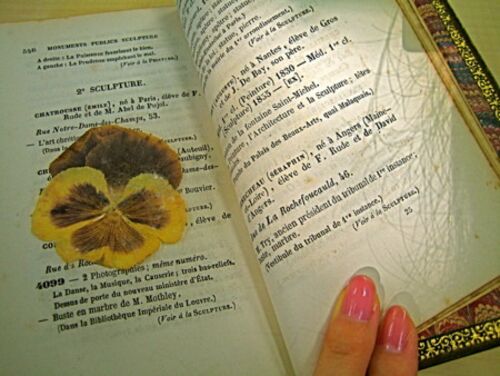 1865年に開かれたサロンの出展目録の中に挟まれていた、三色菫の押し花。誰かの思想の残存かもしれない。